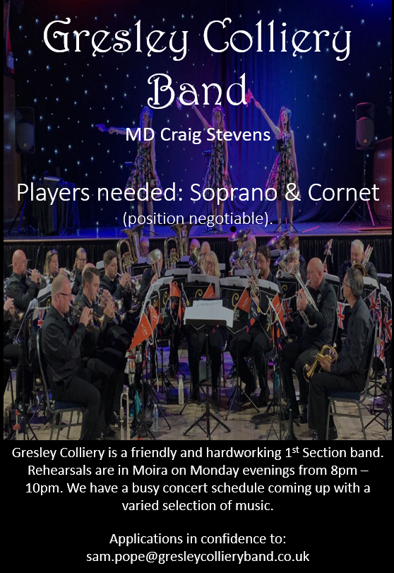 We are currently looking for talented players on Soprano and Cornet to complete our line up for the upcoming area contest in March 2026, and to bolster our ranks for the busy Remembrance and Christmas period.